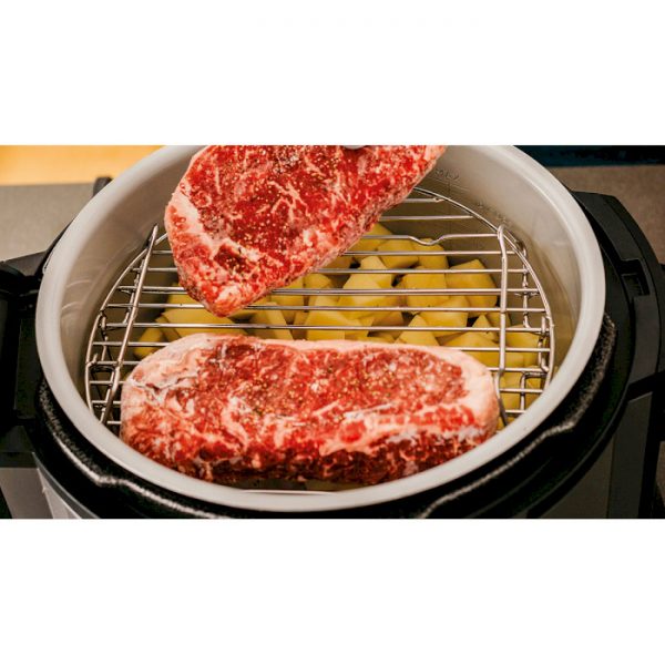 Завдяки наявності в комплекті спеціальних грат з реверсивної конструкцією користувач мультиварки Ninja OP300EU, купити в Києві яку можна буде швидко, може готувати одночасно два продукти. У чаші мультиварки буде найзручніше приготувати гарнір, а на решітці основну частину страви. Цей спосіб роботи дозволяє істотно заощадити час, місце на кухні і кількість задіяної посуду для готування посуду.
