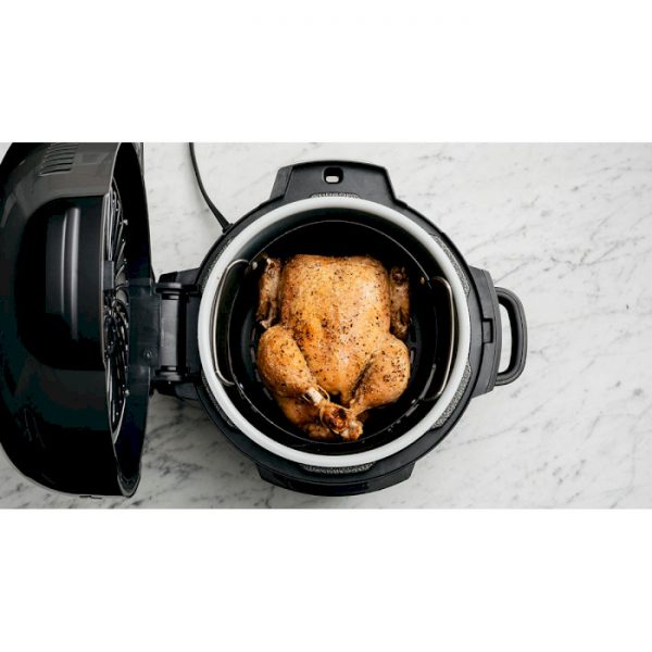 Основна чаша мультиварки має корисний об’єм в 6 літрів. Нанесене на неї керамічне покриття допомагає їжі не підгорає і легко відмиватися. Щоб приготувати смачні страви з засмаженої скоринкою застосовується окрема ємність на 3,6-літрів підтримує технологію Cook & Crisp.